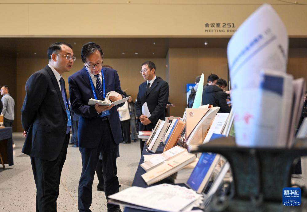 11月21日,嘉宾在全球南方现代化论坛成果展示区翻阅书籍。