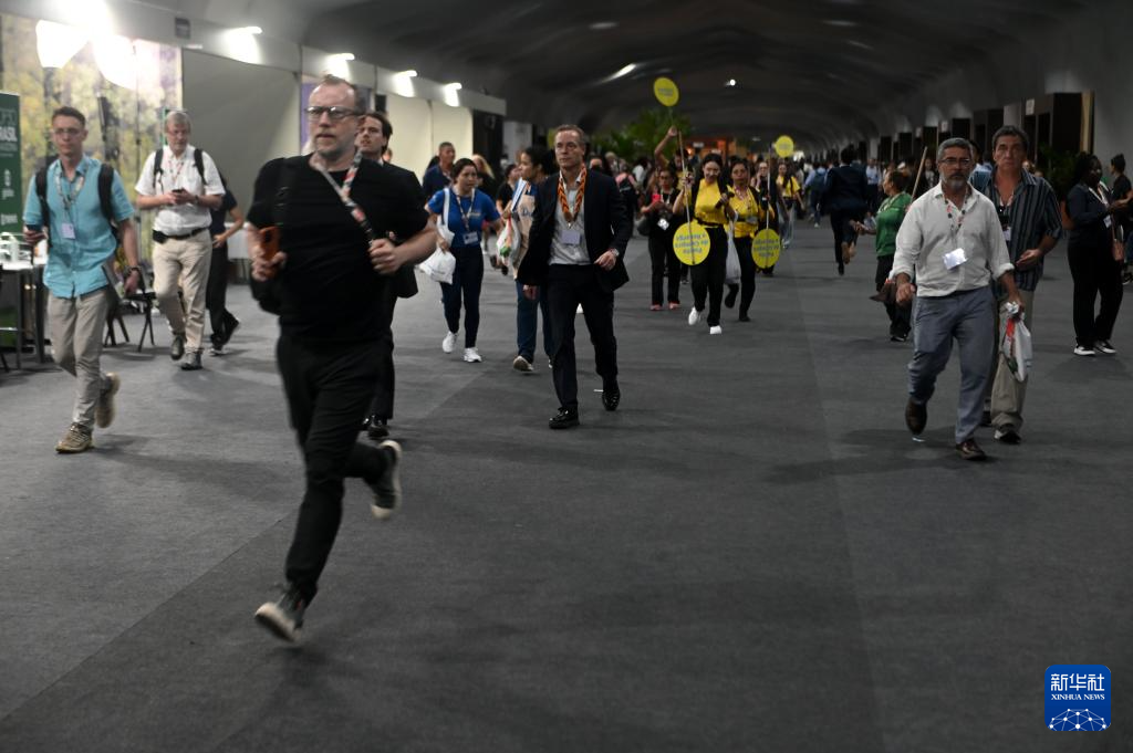 11月20日,在巴西帕拉州贝伦市《联合国气候变化框架公约》第三十次缔约方大会(COP30)会场内,与会者在工作人员指引下撤离。
