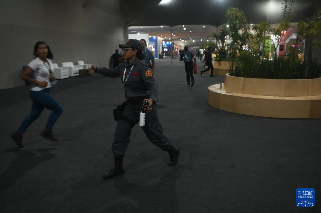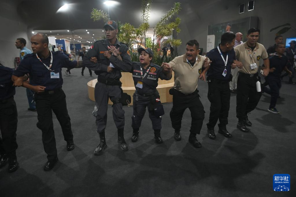 11月20日,在巴西帕拉州贝伦市《联合国气候变化框架公约》第三十次缔约方大会(COP30)会场内,安保人员疏导人群。
