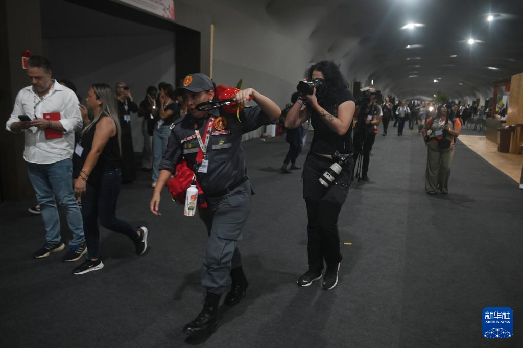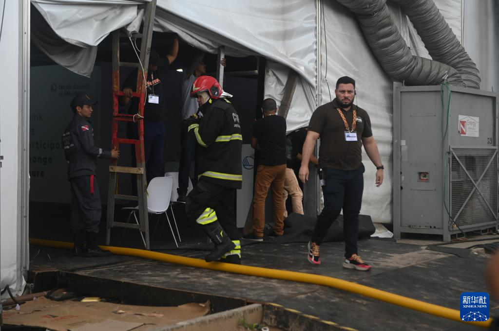 11月20日,在巴西帕拉州贝伦市《联合国气候变化框架公约》第三十次缔约方大会(COP30)会场内,消防员与工作人员开展检查。