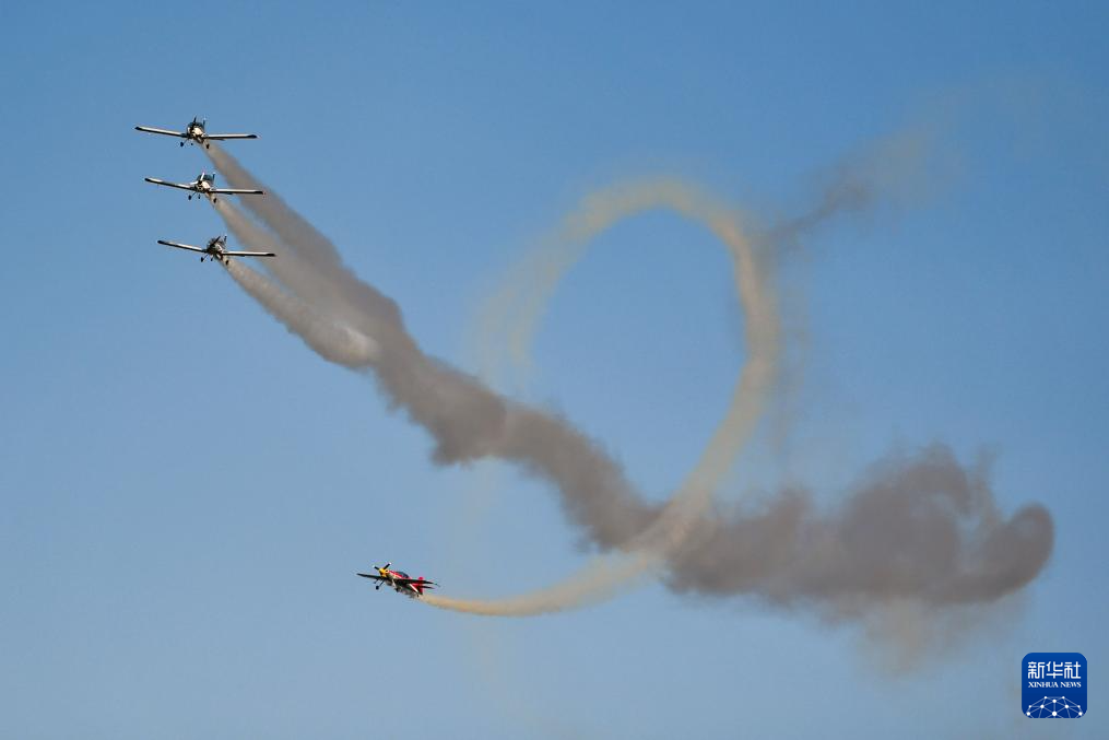 这是11月21日在株洲芦淞机场拍摄的动态飞行表演。
