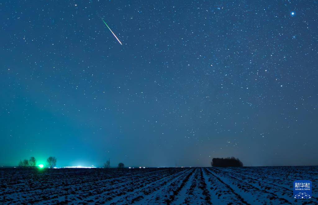 11月18日凌晨在位于黑龙江省黑河市的北大荒集团北安分公司二龙山农场有限公司拍摄的狮子座流星雨。