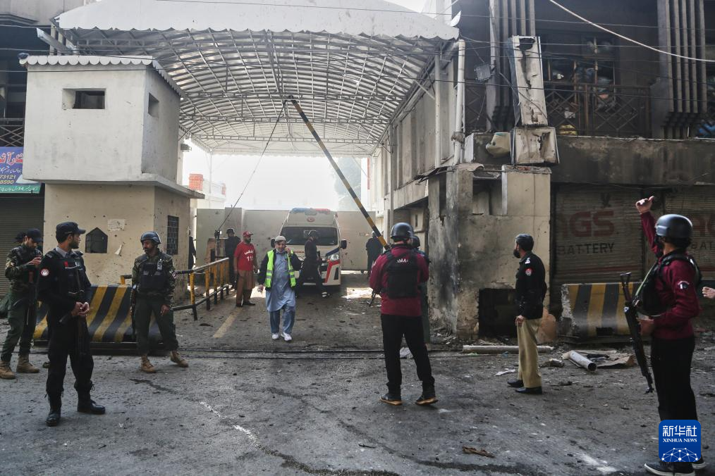 11月24日,安全人员在巴基斯坦白沙瓦查看自杀式爆炸袭击现场。