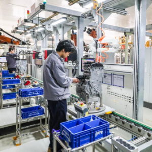 11月27日,在位于金华市金东区的浙江骊勒新能源有限公司的生产车间内,流水线上正在加工新能源汽车的智能增程器。