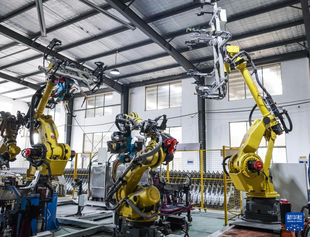 11月27日,在位于金华市金东区的佳通汽车科技(浙江)有限公司的生产车间内,自动化设备在加工新能源汽车的配件。