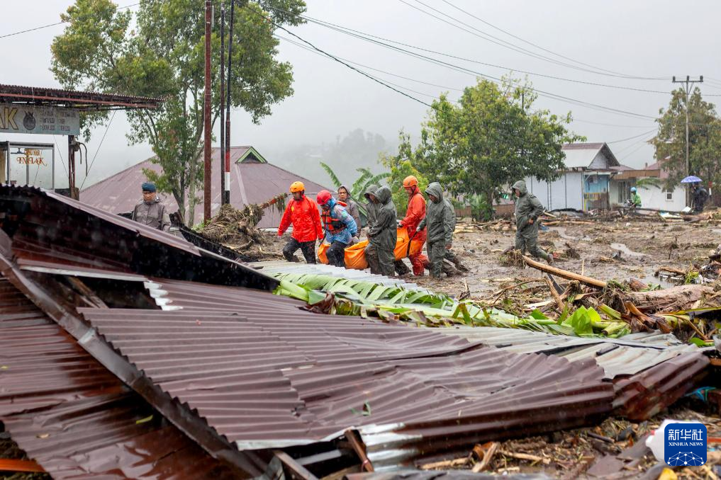 11月27日,在印度尼西亚苏门答腊岛西苏门答腊省,救援人员转运遇难者遗体。