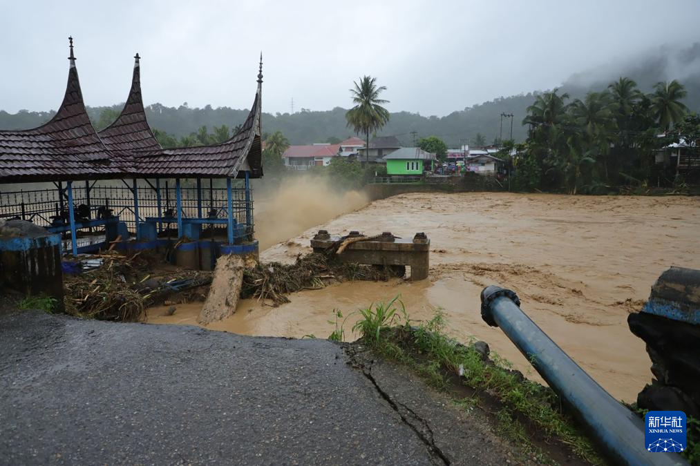11月27日,在印度尼西亚苏门答腊岛西苏门答腊省,一座桥被洪水冲毁。