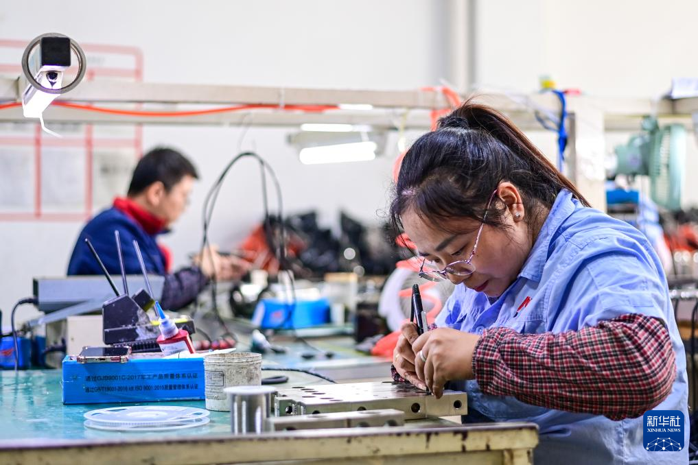 11月27日,宁波柯力传感科技股份有限公司员工在生产线上工作。
