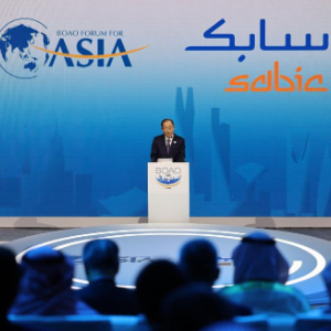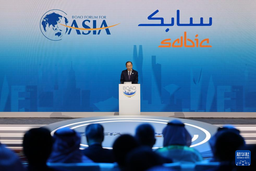 11月27日,在沙特首都利雅得,博鳌亚洲论坛理事长、联合国前秘书长潘基文在开幕式上致辞。