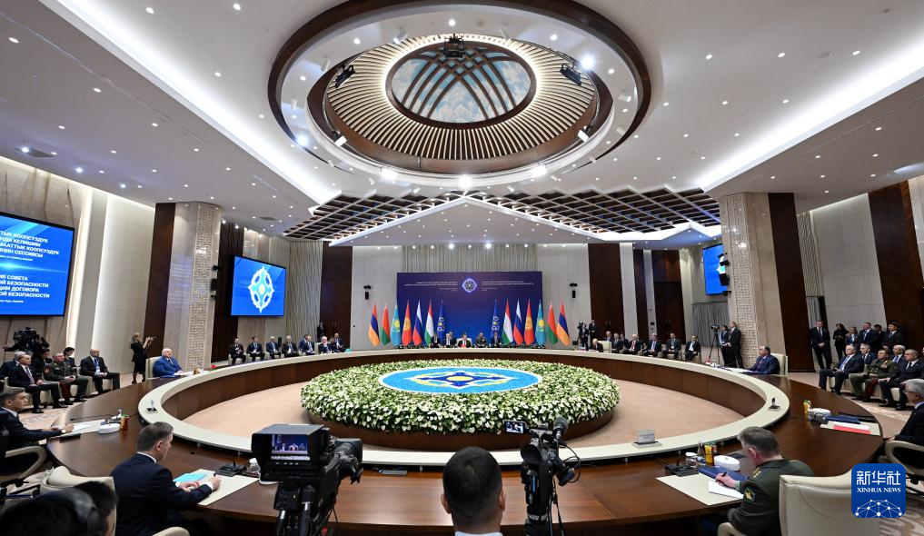 这是11月27日在吉尔吉斯斯坦比什凯克拍摄的集安组织集体安全理事会会议现场。