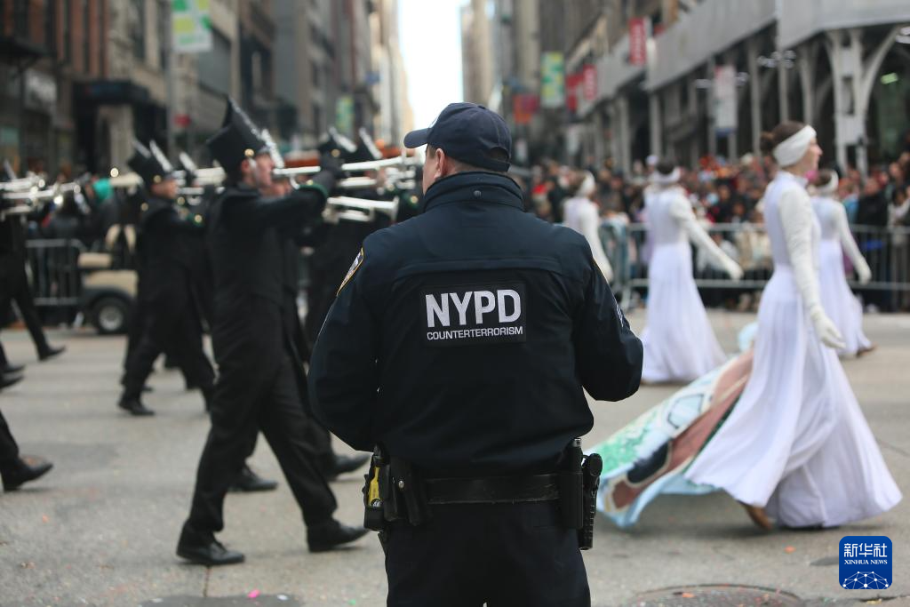 11月27日,在美国纽约,警察在感恩节游行活动现场值守。
