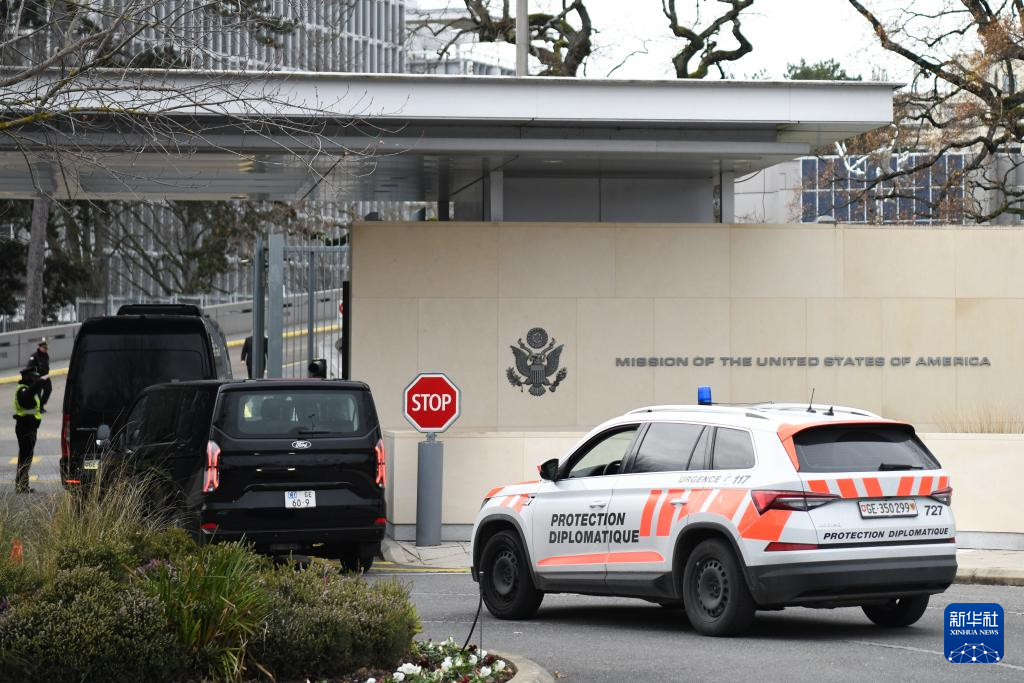 11月23日,在瑞士日内瓦,外交车辆进入美国常驻联合国日内瓦办事处代表团驻地。