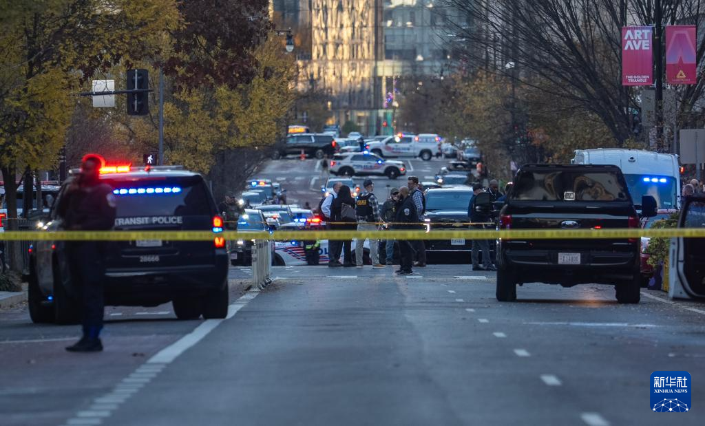 11月26日,在美国首都华盛顿,警方封锁案发现场附近街道。