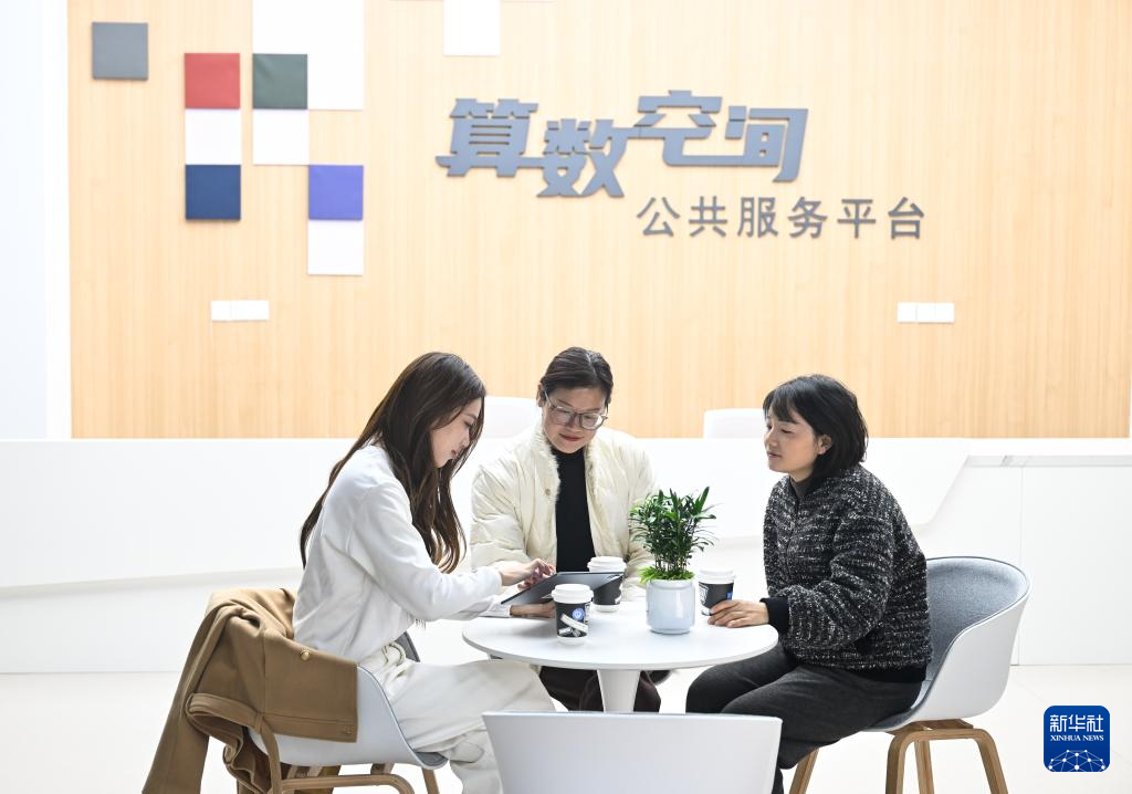 11月28日,工作人员(左一)在位于南京市鼓楼区智梦园的“算数空间”介绍情况。