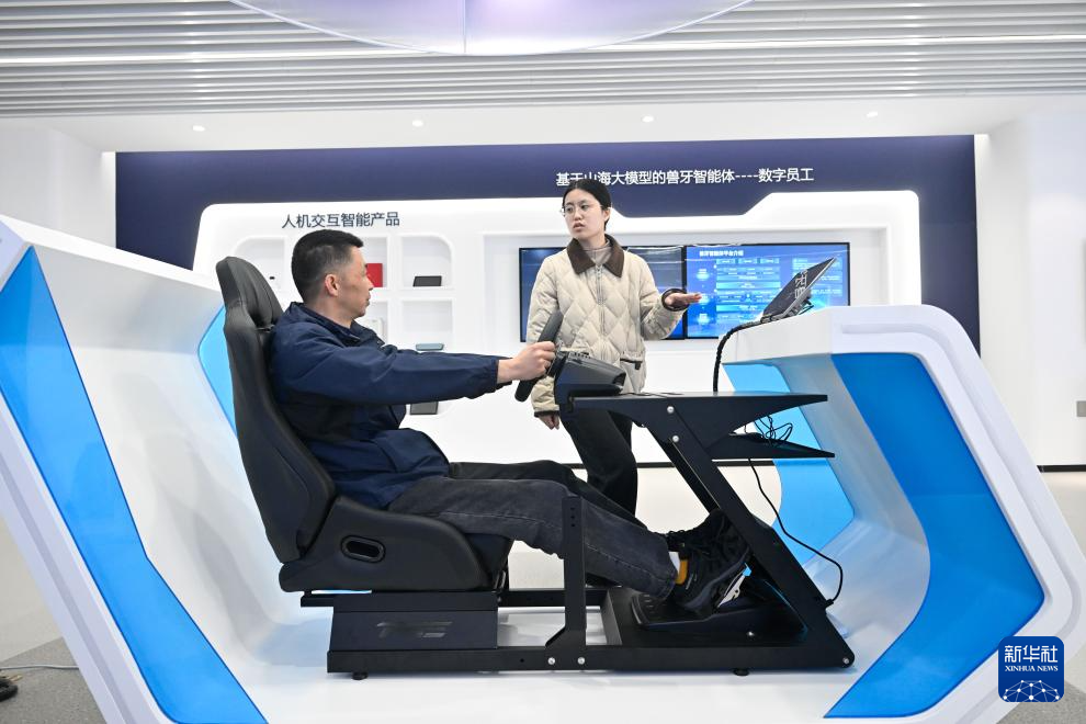 11月28日,在江苏云知声科技有限公司,工作人员(右)介绍一款车载人机交互智能产品。