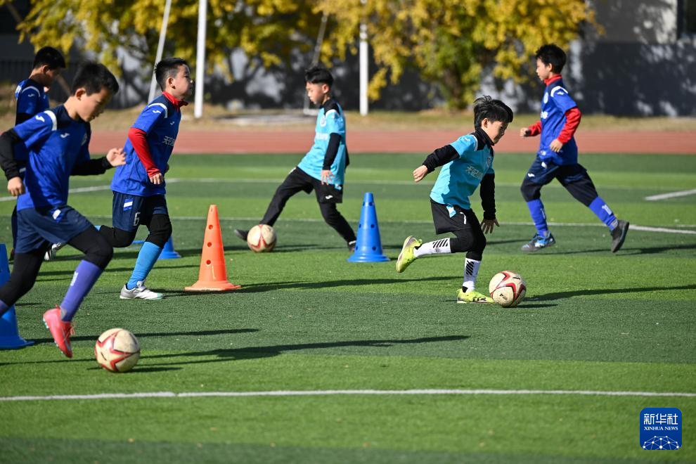 11月28日,在位于南京市鼓楼区的天妃宫小学,足球社团的学生在训练。