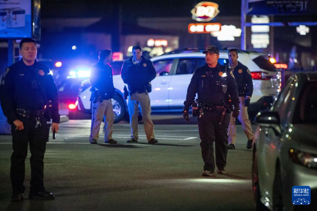 11月29日,在美国加利福尼亚州圣华金县斯托克顿市,警察在枪击事件发生地工作。