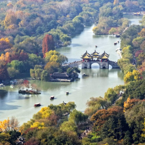 11月30日拍摄的江苏扬州瘦西湖风景区初冬景色(无人机照片)。