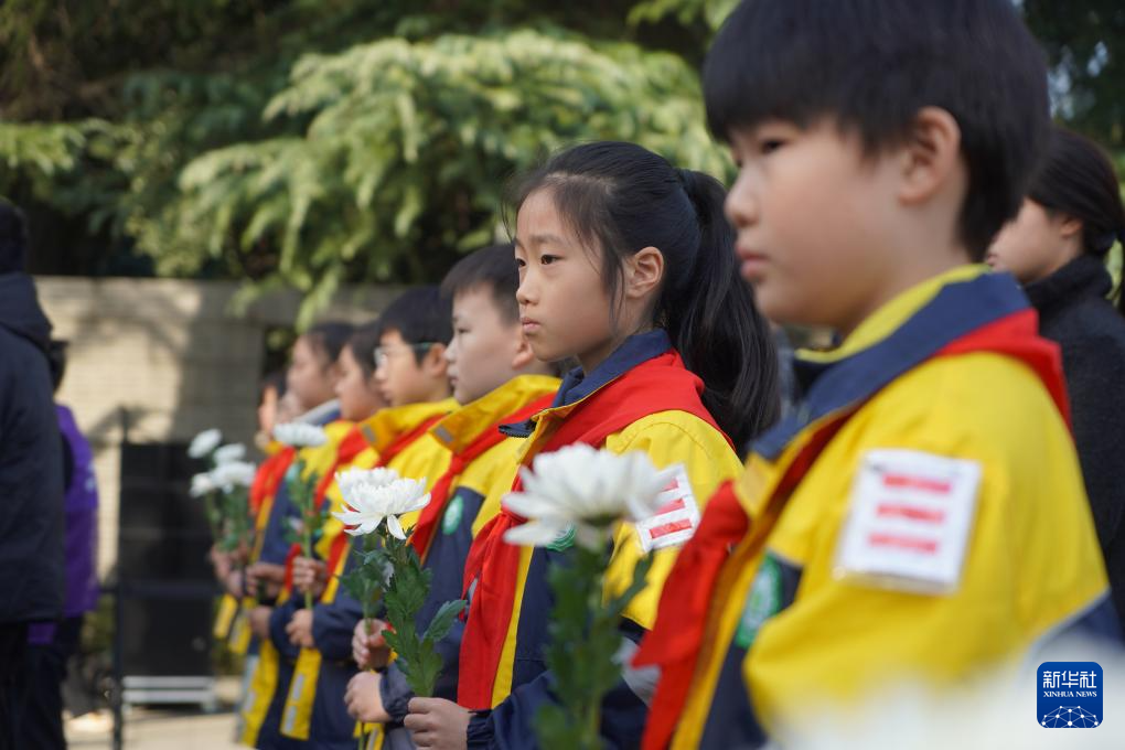 11月30日,小学生在南京大屠杀死难者家庭祭告活动现场聆听发言。