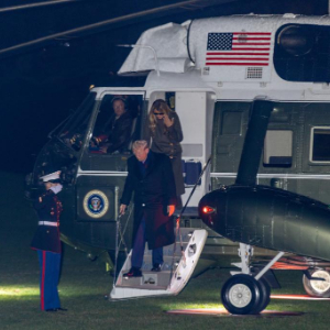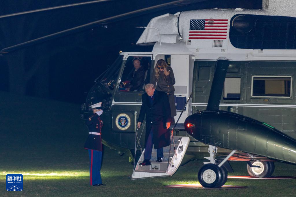11月30日,在美国首都华盛顿白宫,美国总统特朗普和夫人梅拉尼娅返抵白宫。