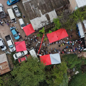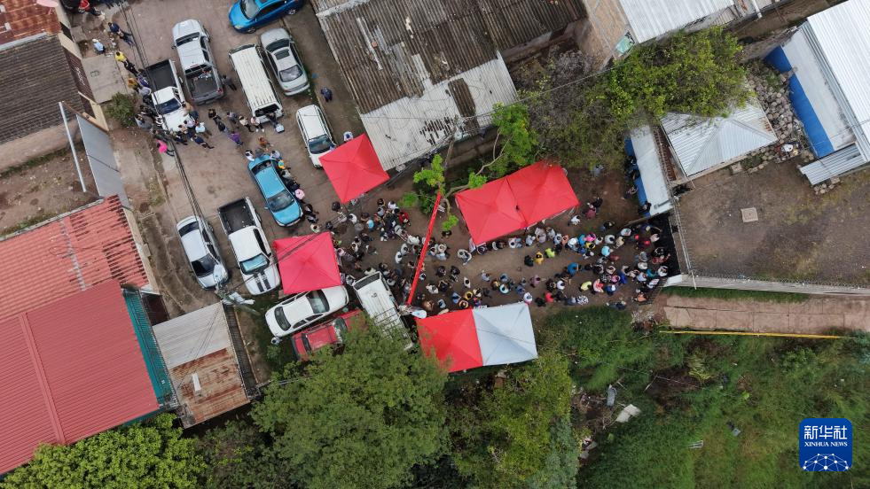 11月30日,在洪都拉斯特古西加尔巴一处投票站外,选民排队等待投票(无人机照片)。