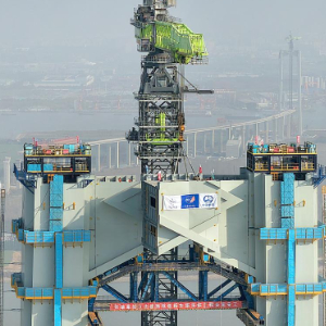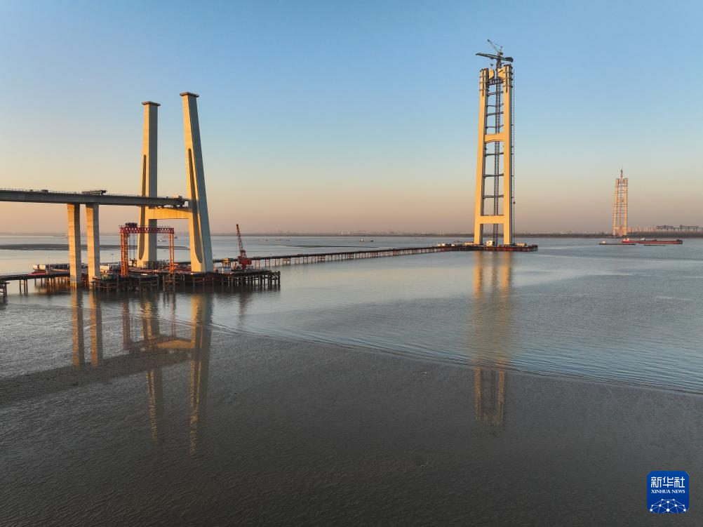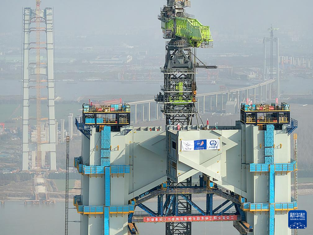 12月1日,由江苏省交通工程建设局建设、中交二航局承建的张靖皋长江大桥南航道桥南主塔上横梁精准合龙,成功实现封顶,标志着大桥南航道桥南北主塔主体工程施工全部完成。张靖皋长江大桥连接江苏苏州、泰州和南通,跨江段全长7859米,设置南、北两座航道桥及南中北三段引桥。