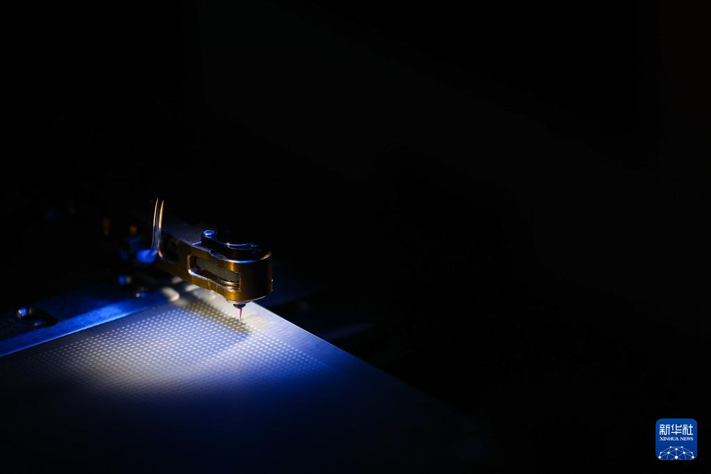 12月2日,在重庆新视通智能科技有限公司COB生产车间,自动固晶机在固定发光晶圆。