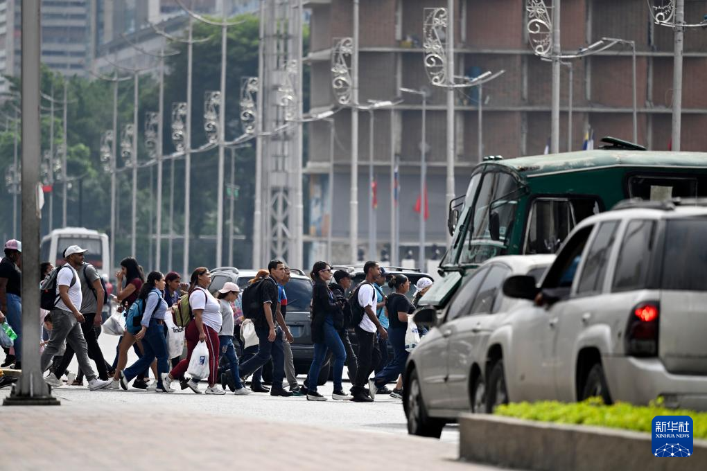 12月2日,在委内瑞拉首都加拉加斯,行人在早高峰时段穿过玻利瓦尔大街。