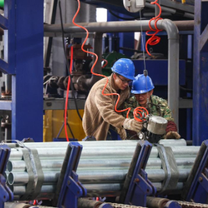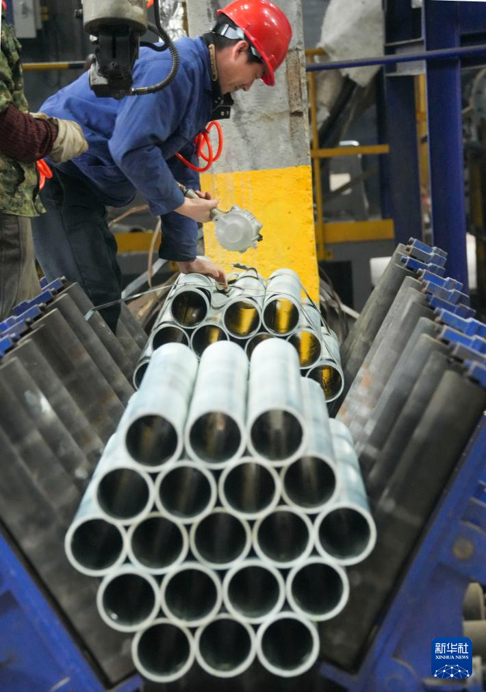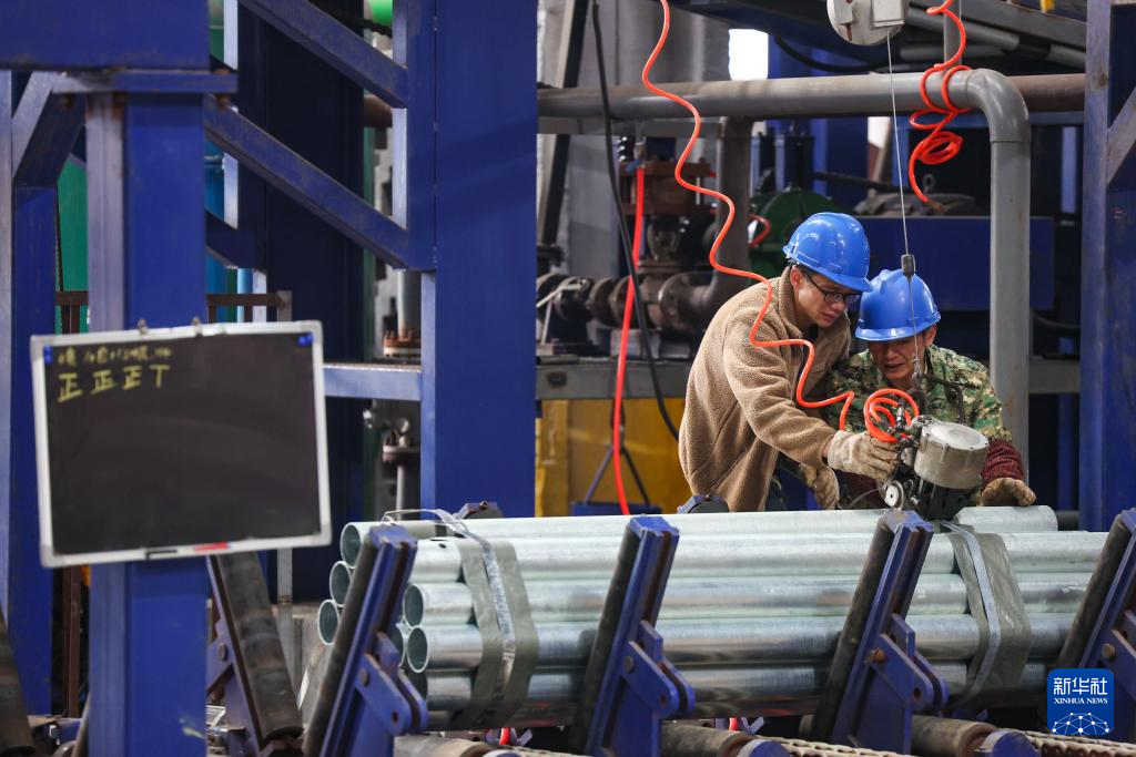 12月3日,在重庆市綦江区三江街道的重庆高速交通安全产业园内,欣安泰(重庆)交通科技有限公司工人打包管件。