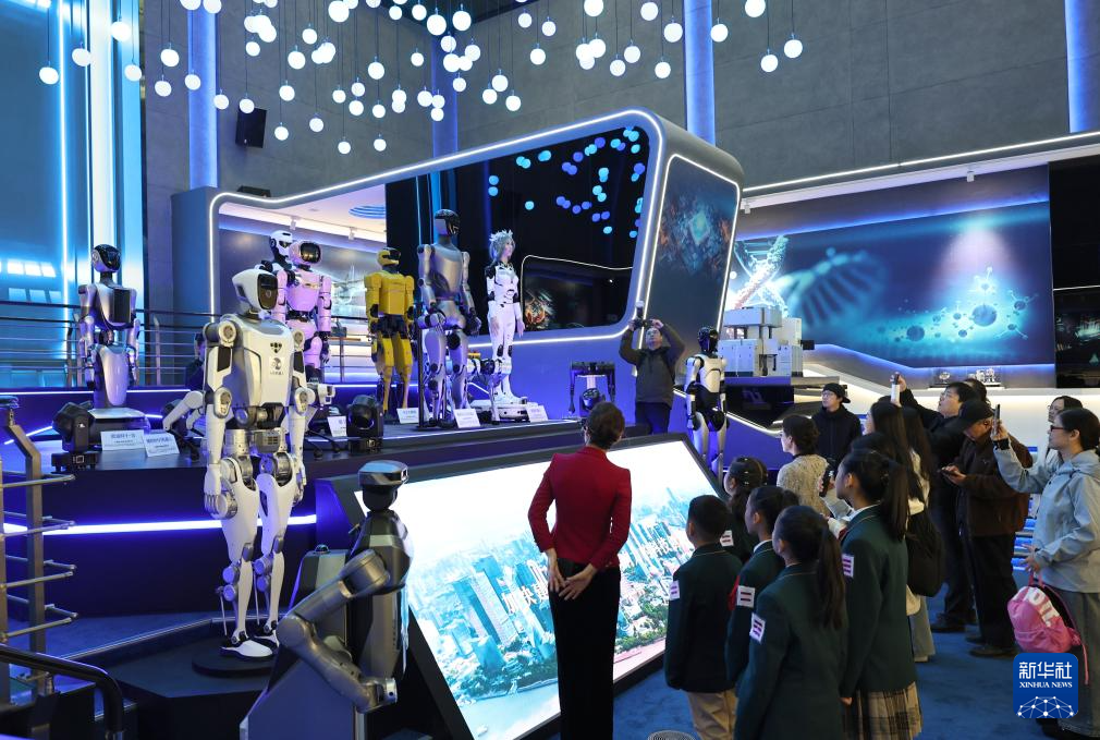 12月6日,参观者在浦东开发开放主题展机器人展区前驻足观看。