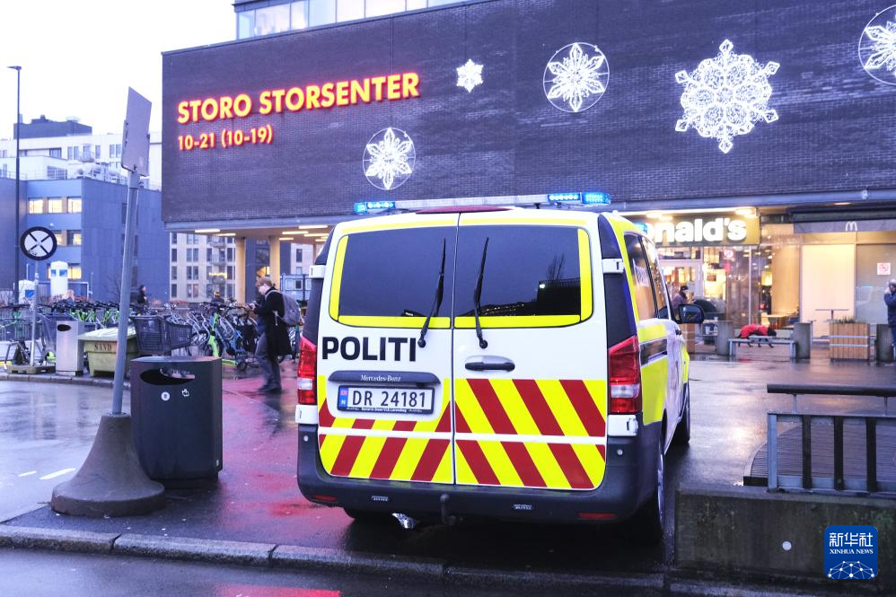 12月8日,警车停在挪威首都奥斯陆的斯托罗购物中心外。