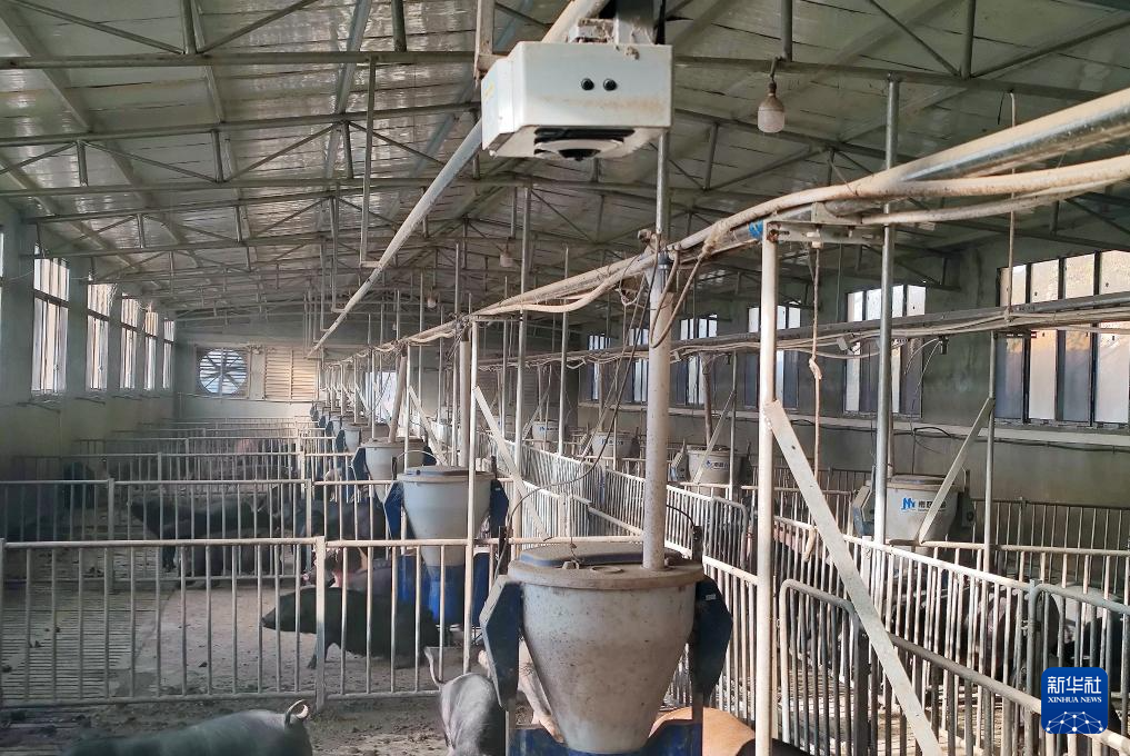 在位于江西省修水县港口镇龙井村的幕村杭猪生态农场里,智能投喂系统在给杭猪投食(12月3日摄)。
