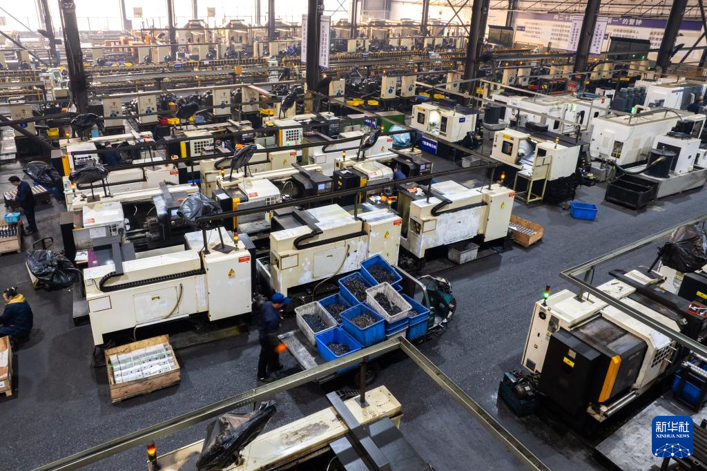 12月11日,在位于桃源县陬市镇观音桥村的湖南飞沃新能源科技股份有限公司生产车间,工人在制作风机叶片紧固件产品(无人机照片)。
