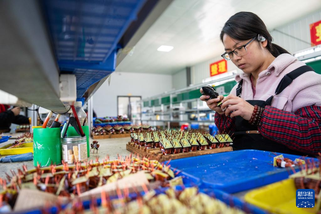 12月11日,在位于桃源县西安镇集镇安置小区的常德市金磁电器有限公司乡村车间,工人在检查电感器产品品质。