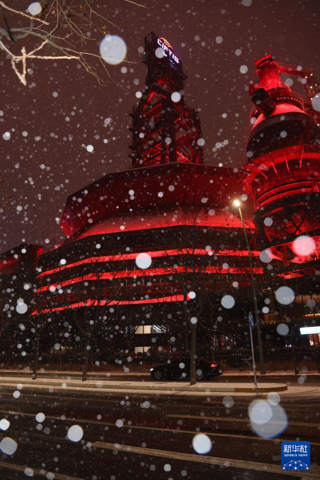 这是12月12日在北京市石景山区拍摄的首钢园夜景。