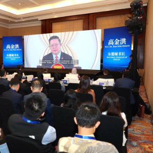 12月11日,在印度尼西亚雅加达,东盟秘书长高金洪在“红厅论坛·开拓中国-东盟合作新空间”上视频致辞。