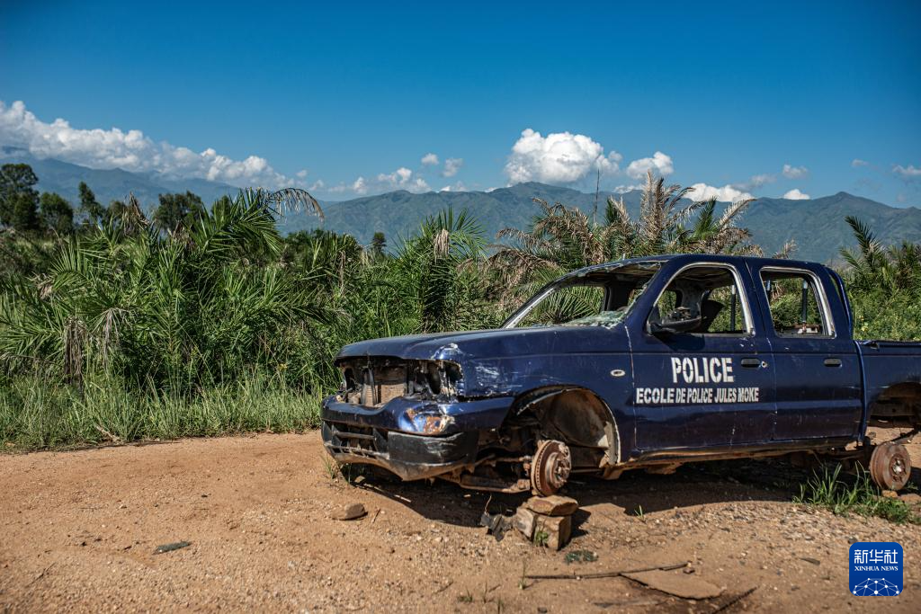 这是12月14日在刚果(金)东部南基伍省乌维拉附近拍摄的废弃警车。