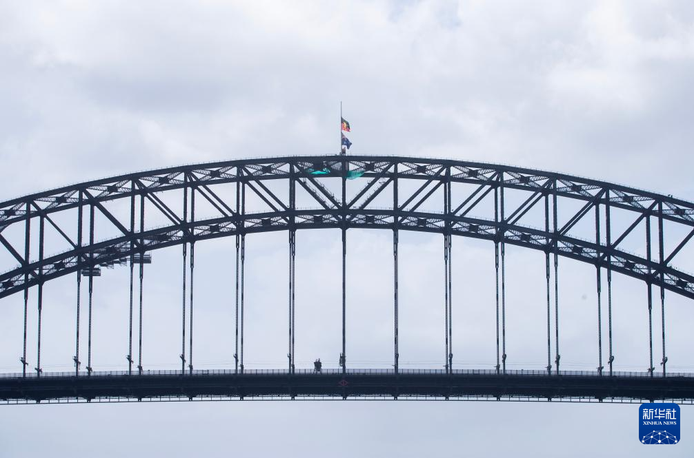 12月15日,澳大利亚悉尼的海港大桥降半旗悼念邦迪滩枪击事件遇难者。