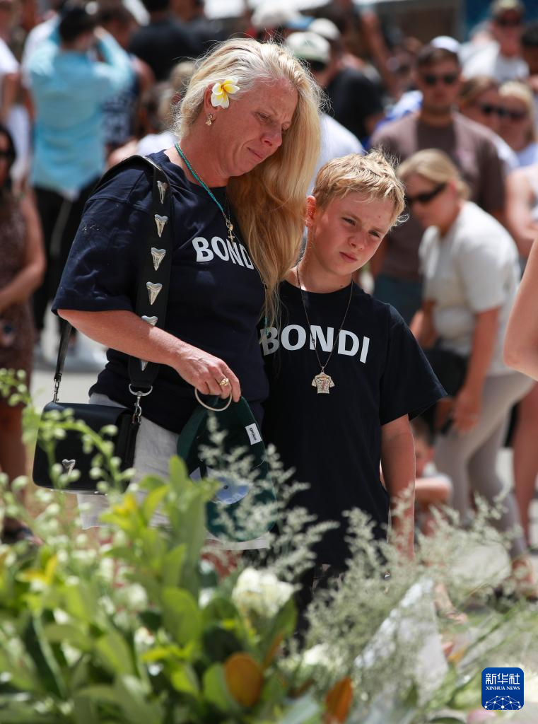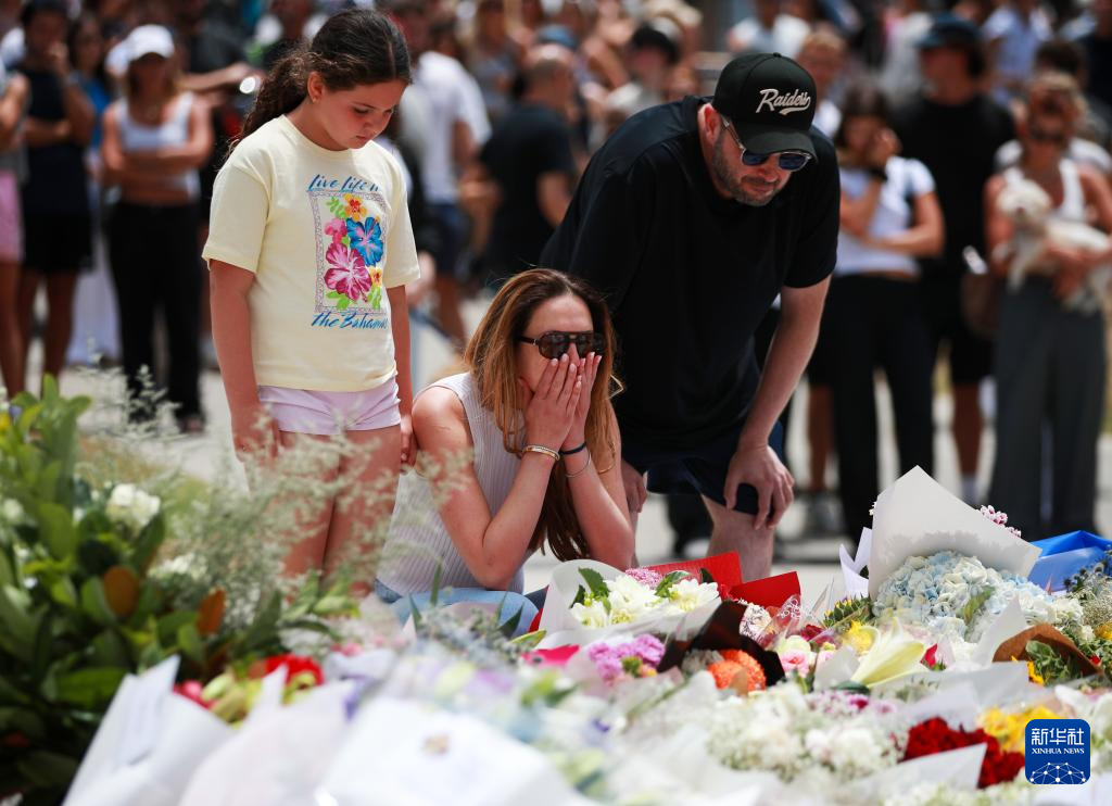 12月15日,在澳大利亚悉尼,人们在邦迪滩枪击事件现场附近悼念遇难者。