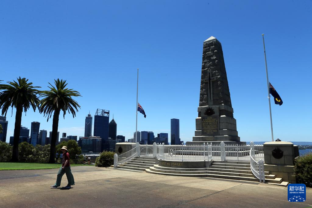 12月15日,澳大利亚珀斯的国王公园降半旗悼念悉尼邦迪滩枪击事件遇难者。