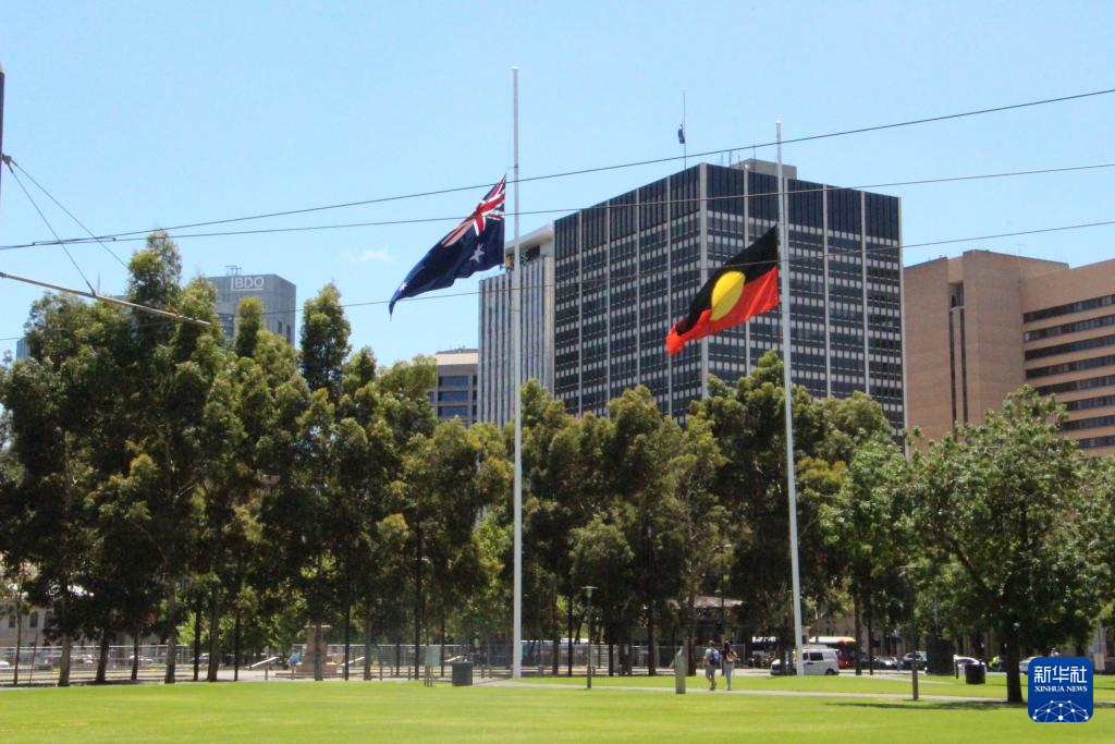 12月15日,在澳大利亚阿德莱德,维多利亚广场降半旗,悼念悉尼邦迪滩枪击事件遇难者。