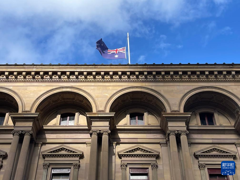 12月15日,在澳大利亚墨尔本,老国库大楼降半旗,悼念悉尼邦迪滩枪击事件遇难者(手机照片)。