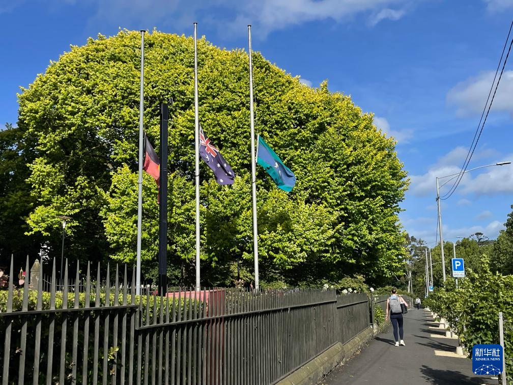 12月15日,在澳大利亚墨尔本,路边的旗杆降半旗,悼念悉尼邦迪滩枪击事件遇难者(手机照片)。