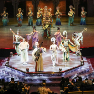 《乐动敦煌》通过全息投影等数字技术、美轮美奂的舞台美术设计以及演员的精彩表演,生动还原了莫高窟壁画中“伎乐飞天”等经典乐舞场景。