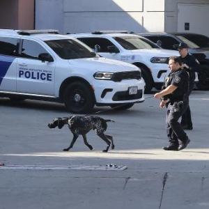 12月15日,安全人员在美国加利福尼亚州洛杉矶的大都会拘留中心附近执勤。