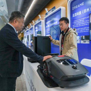 12月16日,参会者在2025两岸企业家峰会年会主会场外的展区参观。