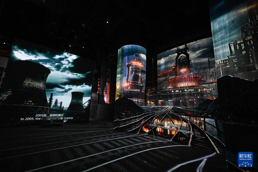 这是12月18日在首钢园三高炉拍摄的“钢铁时代”沉浸展。