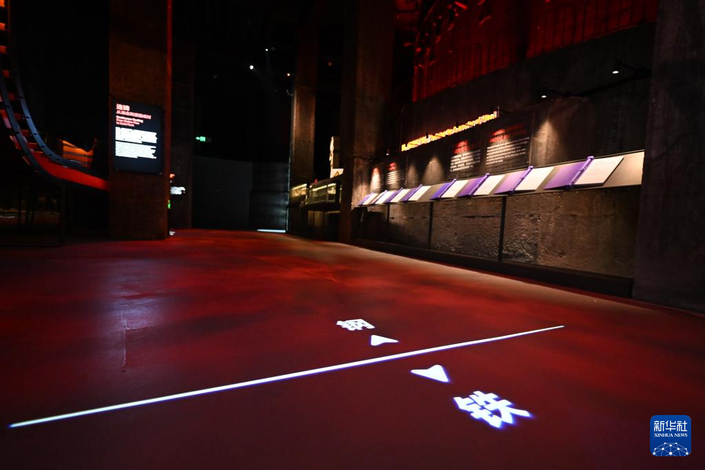 这是12月18日拍摄的“钢铁时代”沉浸展中的“皮带通廊”。在过去,皮带通廊将原料输送至高炉。