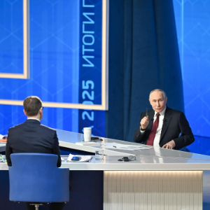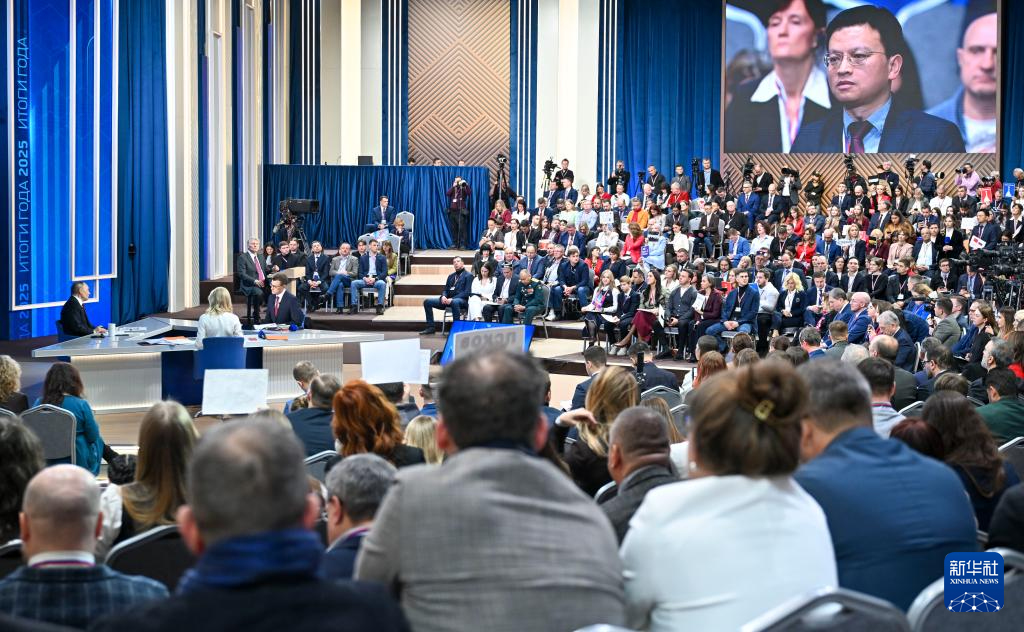 俄罗斯总统普京19日在莫斯科红场附近的商栈展览中心举行一年一度的“年度盘点”活动,对2025年俄国内重要事务和重大国际问题进行总结,以现场问答、直播连线形式回答记者和俄民众提问。
