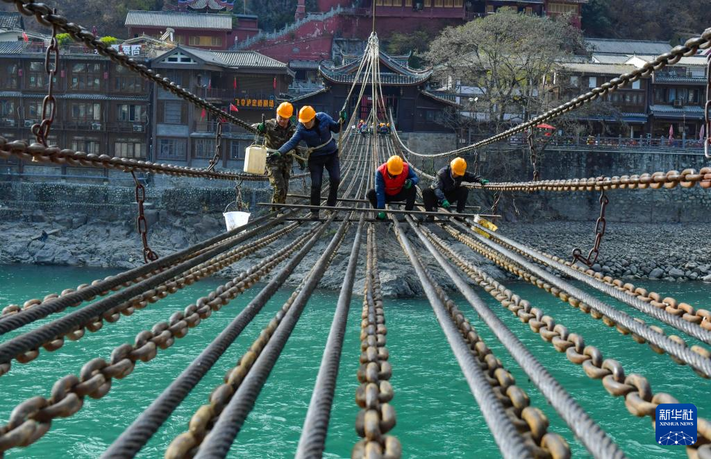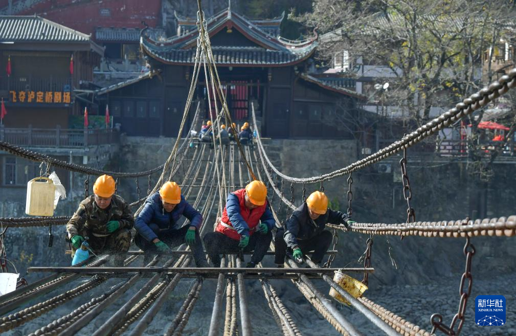四川省甘孜藏族自治州泸定县于12月9日启动泸定桥检修维护工作,预计12月29日完成。本次检修维护聚焦泸定桥核心结构安全与历史风貌留存,针对桥梁关键部位开展重点作业,对承载桥梁主体的9根钢缆进行除垢清理并涂抹黄油防护保养,对出现锈蚀的铁链实施专业除锈处理,同步更换少量老化桥板。